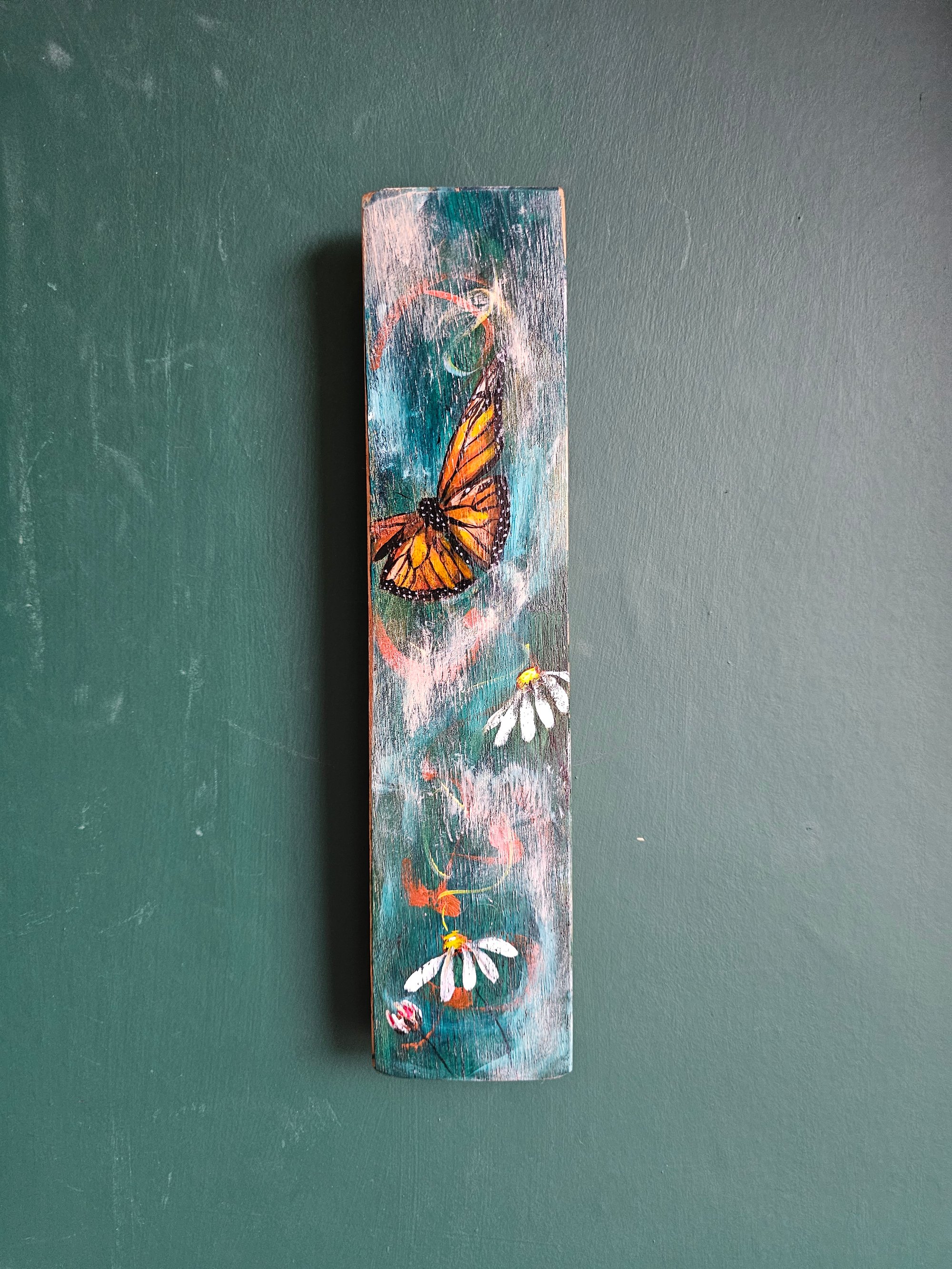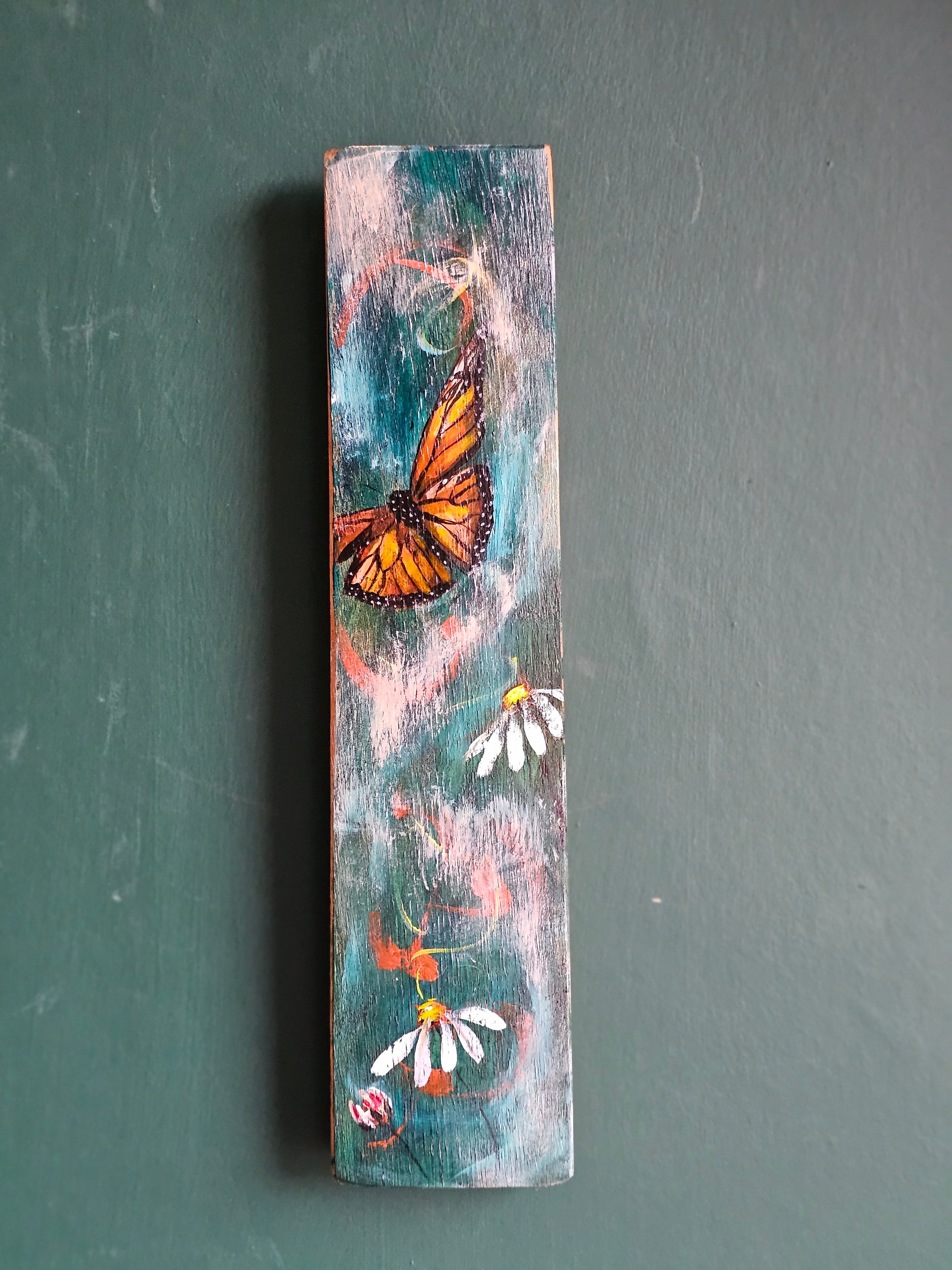 Monarch butterfly & daisy dream, Scottish Stave Art.