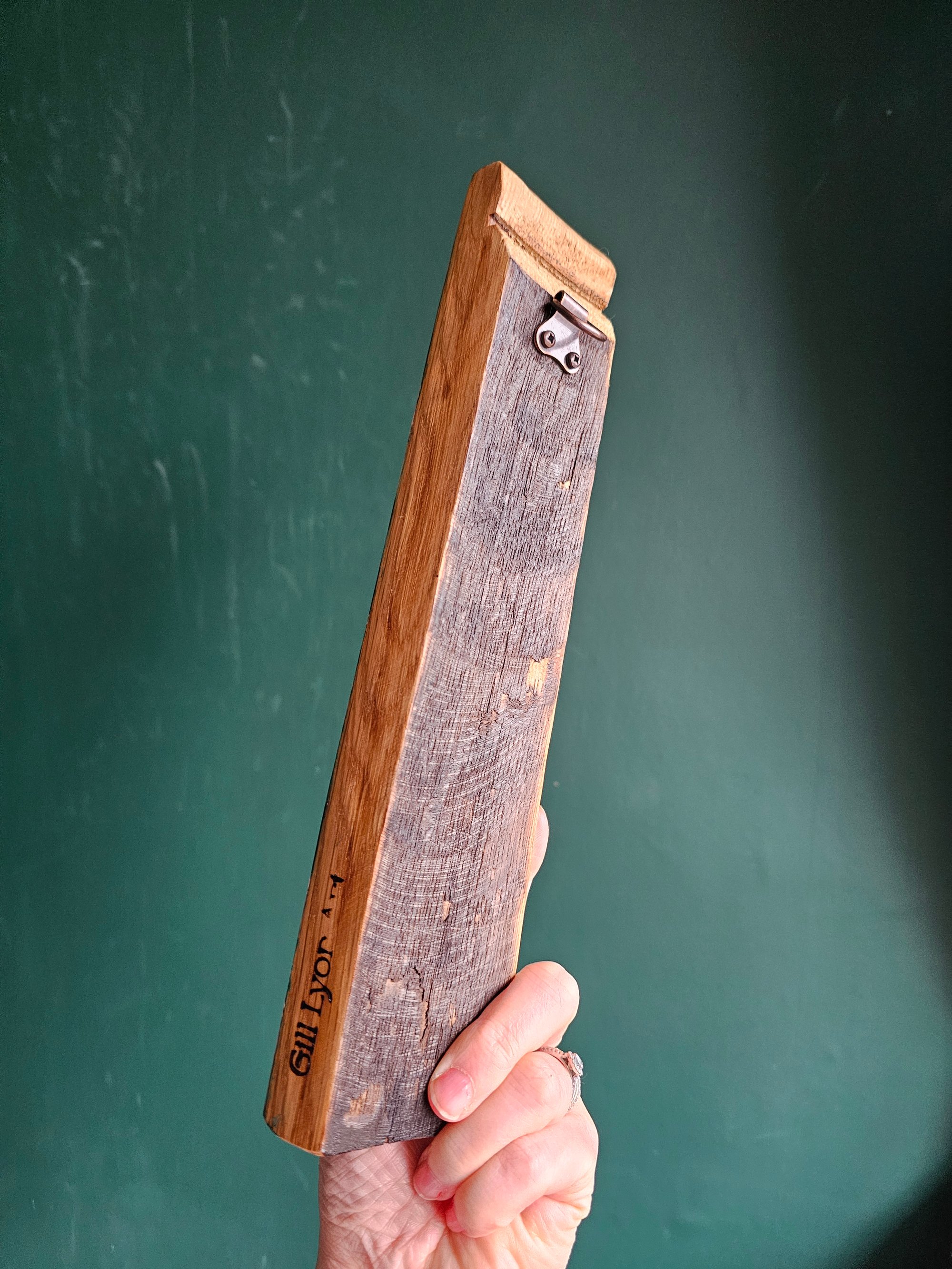 Hand painted with oil & acrylic on a section of oak whisky barrel wood.