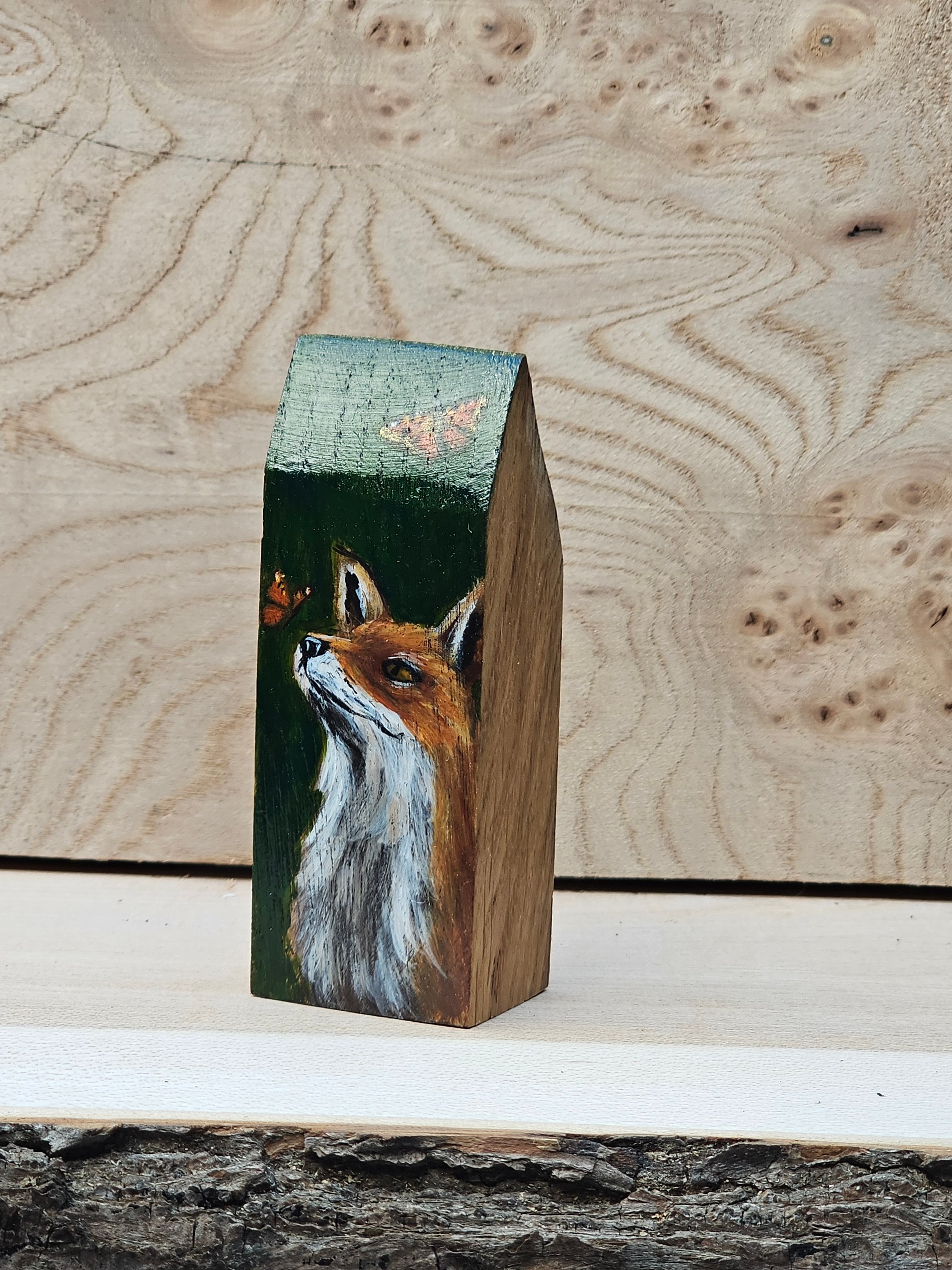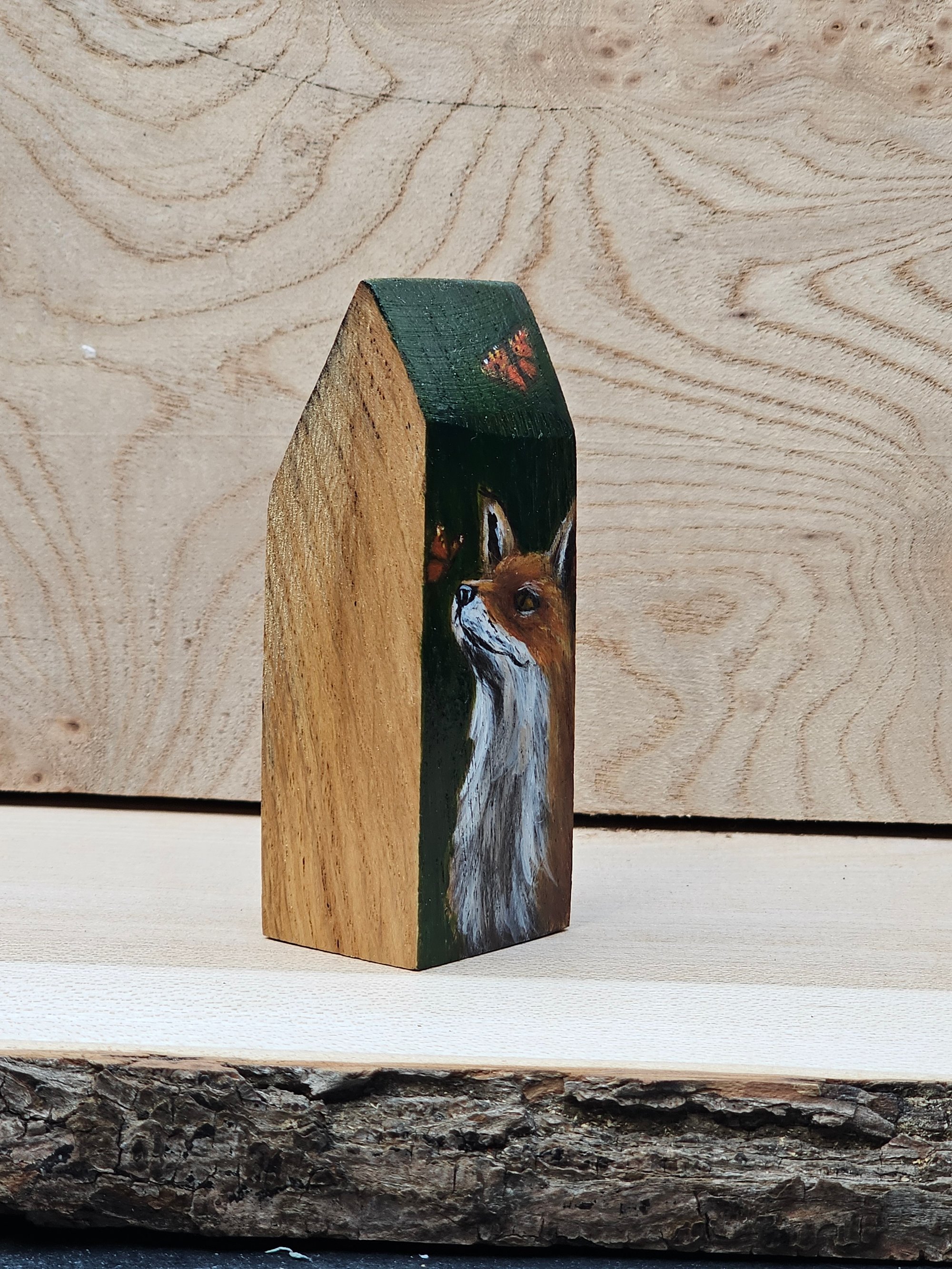 Crafted from a section of an oak whisky barrel lid and hand painted with oil and acrylic.