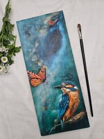 This piece invites you to observe a fleeting moment between two winged creatures.